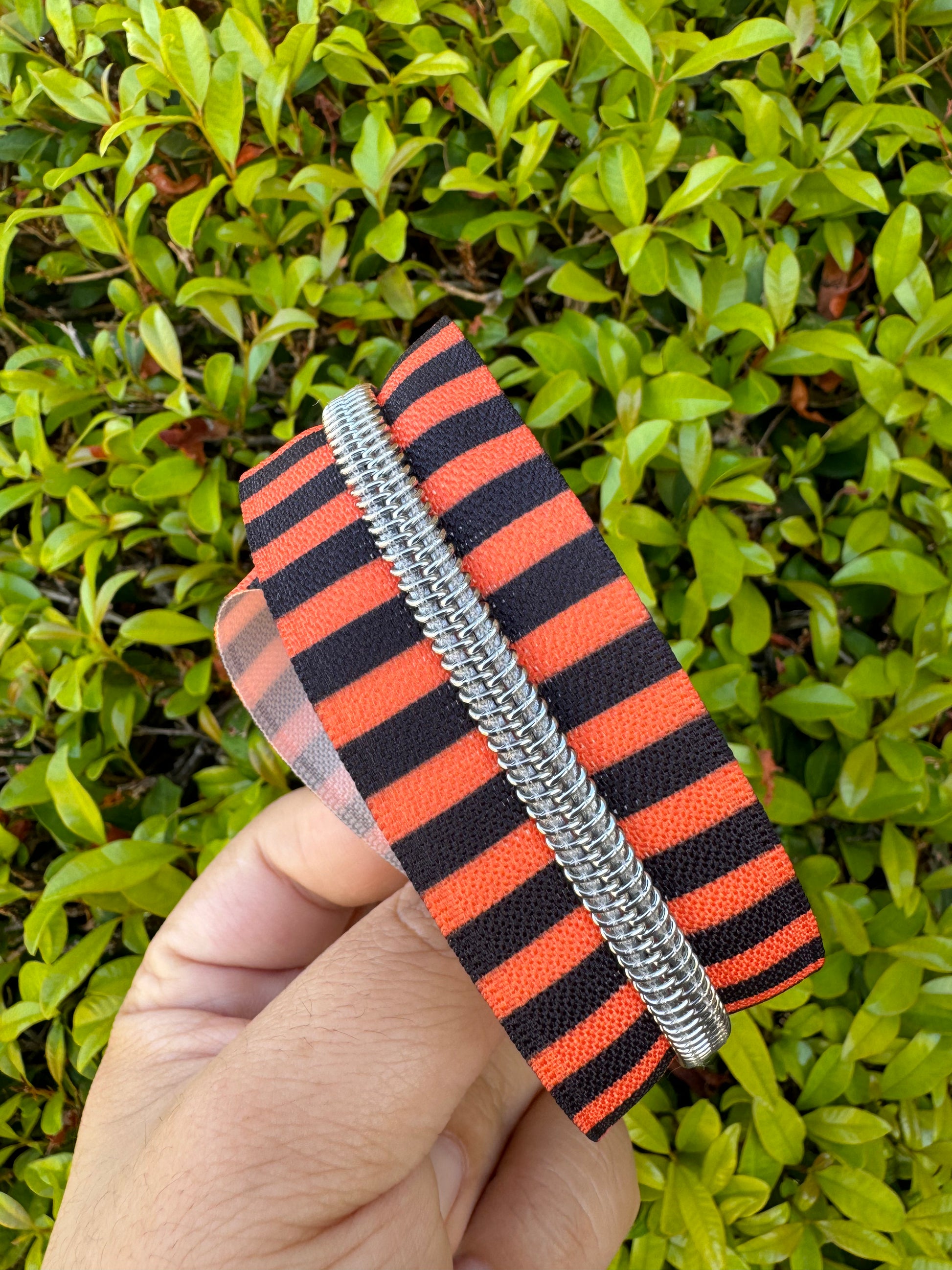 Orange & Black Stripes Zipper Tape - #5 Silver - RTS